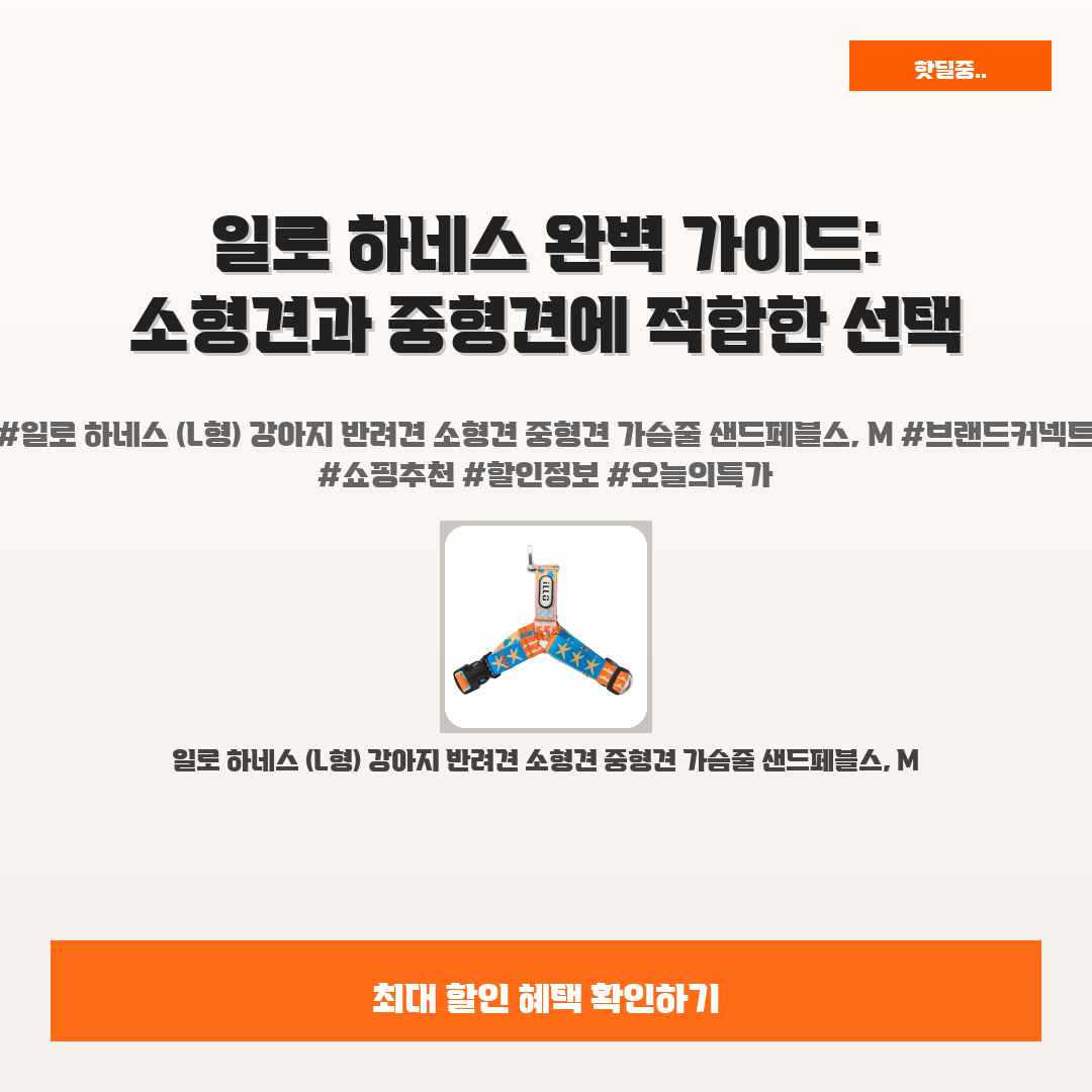 🛍️ 이 포스팅은 네이버 쇼핑 커넥트 활동의 일환으로,판매 발생 시 수수료를 제공받습니다.오늘 소개할 일로 하네스는,강아지 소유자라면 꼭 가져야 할 완벽한 아이템이에요!특히 소형견과 중형견을 키우는 여러분, 걷는 모습이 믿을 수 없이 멋있고 안정감이 장난 아니에요."일로 하네스 (L형)"는 이런 걱정을 싹 없애줄 수 있는 최고의 선택이랍니다.이제는 멋진 산책을 더욱 편안하게 즐길 수 있는 기회를 잡아보세요.여러분의 사랑스러운 반려견이 행복하게 산책하는 모습을 떠올리면, 그 행복감을 느낄 수 있을 거예요.최적의 가슴줄로 안정감과 스타일을 동시에 갖춘 일로 하네스는 강력한 추천 제품이에요!지금 바로 만나보시고 후회 없는 선택을 해보세요.※ 이거 진짜 제가 직접 써보고 쓰는 리뷰예요 광고 아님!!일로 하네스..