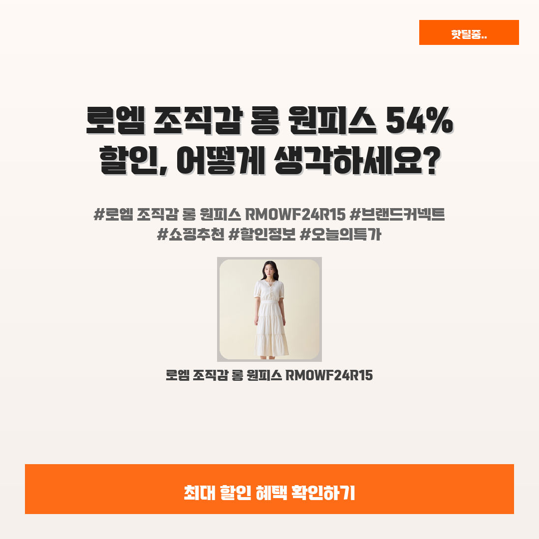 🛍️ 이 포스팅은 네이버 쇼핑 커넥트 활동의 일환으로,판매 발생 시 수수료를 제공받습니다.오늘 소개할 제품은 단연코,,바로 로엠 조직감 롱 원피스 RMOWF24R15입니다!요즘 날씨가 변덕스러워서 어떤 원피스를 입을지 고민이시죠?다양한 스타일과 편안함을 동시에 원하신다면 이 제품이 굉장한 솔루션이 될 거예요!이 롱 원피스는 착용하면 즉시 나만의 스타일을 완성해줍니다. 특히 지금 54% 할인 중이라 가성비가 정말 뛰어나요!저도 처음 입었을 때 그 편안함과 세련됨에 너무 감동했어요.여러분들도 이 매력을 꼭 경험해 보셨으면 좋겠어요!놓치지 마세요! 로엠 조직감 롱 원피스로 여러분의 스타일을 완성해 보세요!※ 이거 진짜 제가 직접 써보고 쓰는 리뷰예요 광고 아님!!로엠 조직감 롱 원피스 RMOWF24R1554..